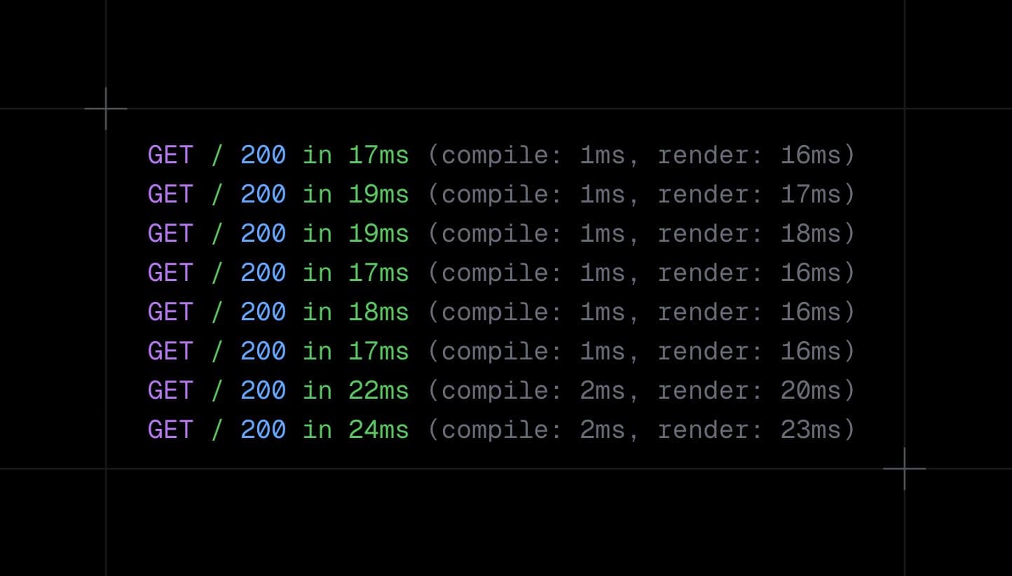 In Next.js 16 the development request logs are extended showing where time is spent.