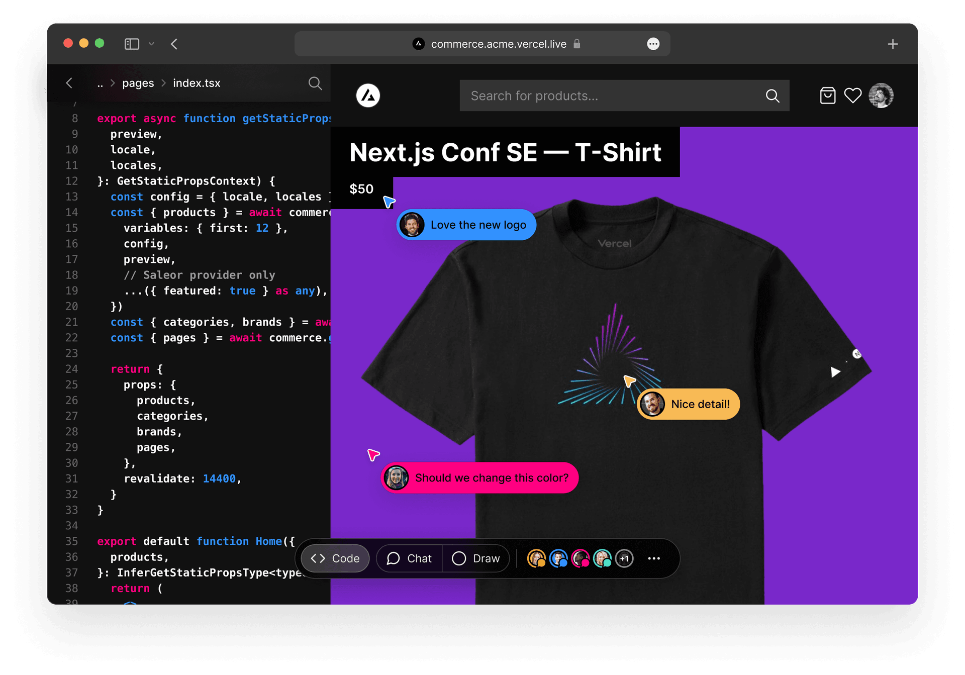 - Next.js Live (Preview Release): Code in the browser, with your team, in real time.